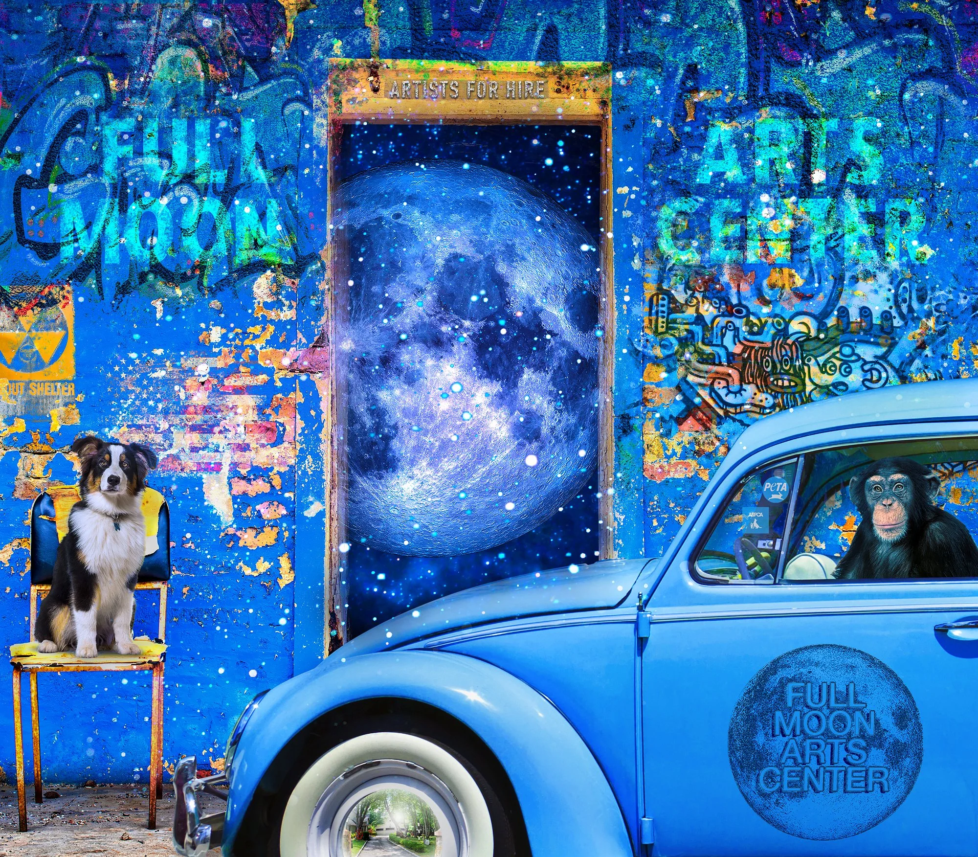 Welcome to the Full Moon Artists by Robert Moore, 2020, digital collage (click image to view full screen)